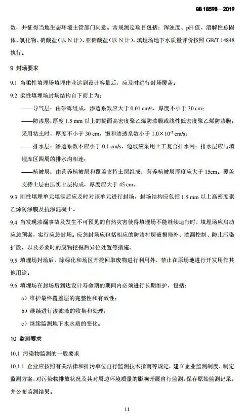 危险废物填埋污染控制标准(GB 18598-2019 代替 GB 18598-2001)